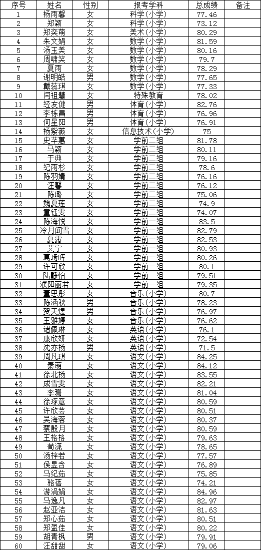 根据《南京市秦淮区教育局所属学校2021年公开招聘新教师公告》(宁事招公告(R)[2021]3号),秦淮区小学、幼儿园2021年新教师公开招聘面试工作已于3月6日结束。现根据总成绩排名,确定入围体检人员名单,并予以公示。如有异议,请于公示期间提出。