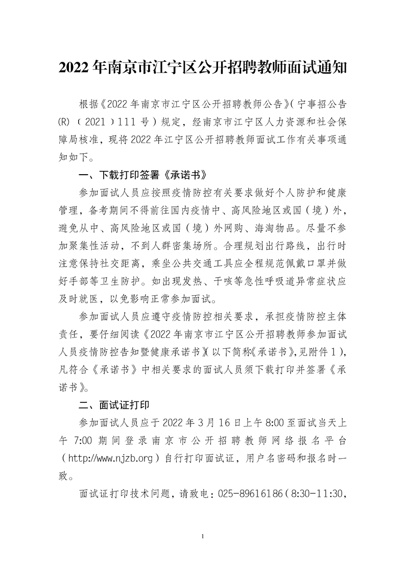 附件1:2022年南京市江宁区公开招聘教师参加面试人员疫情防控告知暨健康承诺书.docx
